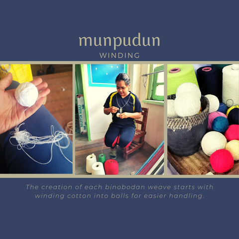 It takes a long time and a lot of people working together to make each unique binobodan piece. Here's how we make our binobodan weaves.
